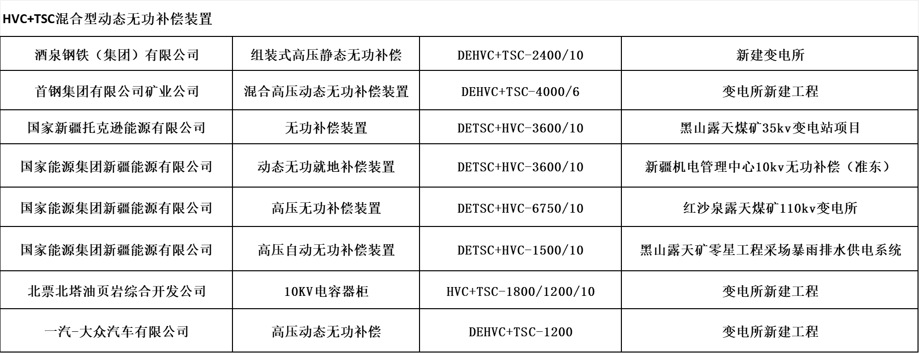 高壓HVC+TSC動態(tài)無功功率補(bǔ)償裝置廣泛應(yīng)用于高壓交直流輸變電系統(tǒng)和冶金、煤炭、港口門機(jī)、電氣化鐵路、重型機(jī)械制造等工業(yè)、交通沖擊性負(fù)荷配電網(wǎng)中。其主要作用就是對沖擊性負(fù)荷、時(shí)變負(fù)荷能夠?qū)崟r(shí)監(jiān)測、動態(tài)補(bǔ)償,實(shí)現(xiàn)功率因數(shù)補(bǔ)償至0.9以上,穩(wěn)定系統(tǒng)電壓,減少供電系統(tǒng)的網(wǎng)絡(luò)損耗,提高電能質(zhì)量等顯著特點(diǎn),可以給用戶帶來巨大的經(jīng)濟(jì)效益和社會效益。