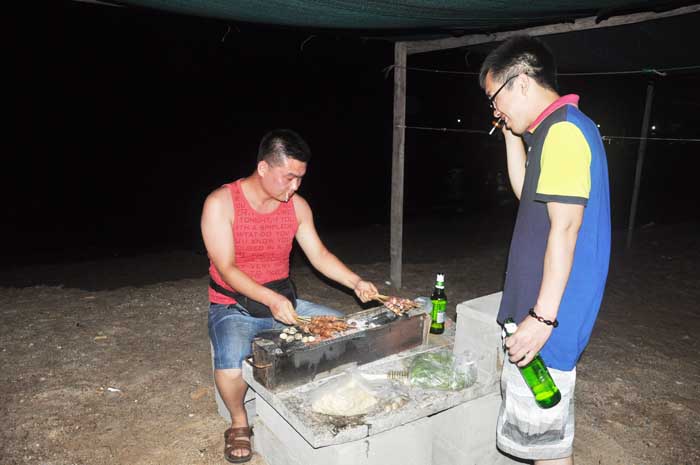 燒烤開(kāi)始了                                 “大廚”為我們服務(wù)